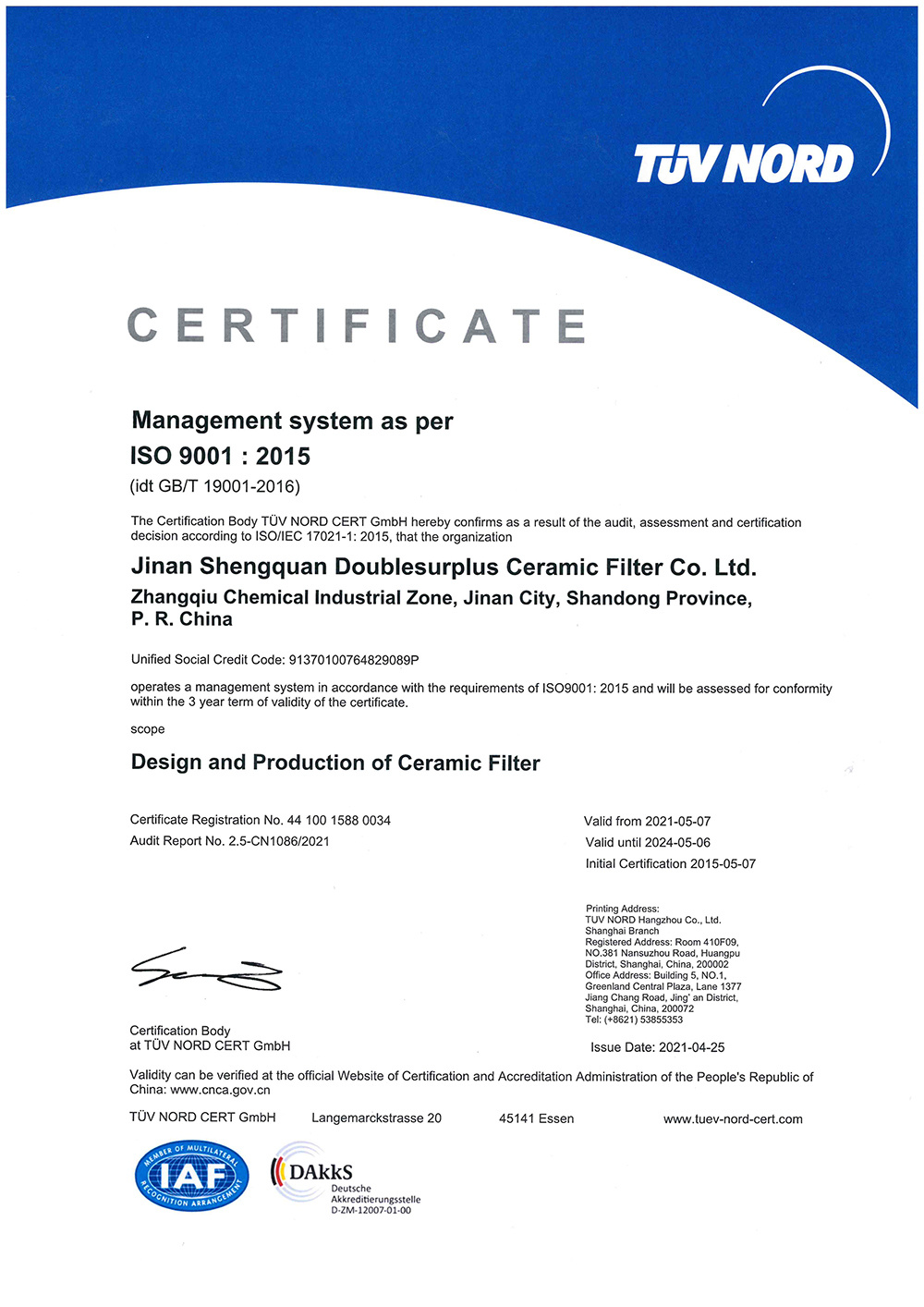 Shengquan Group becomes the leading ceramic filter supplier in Aisa.