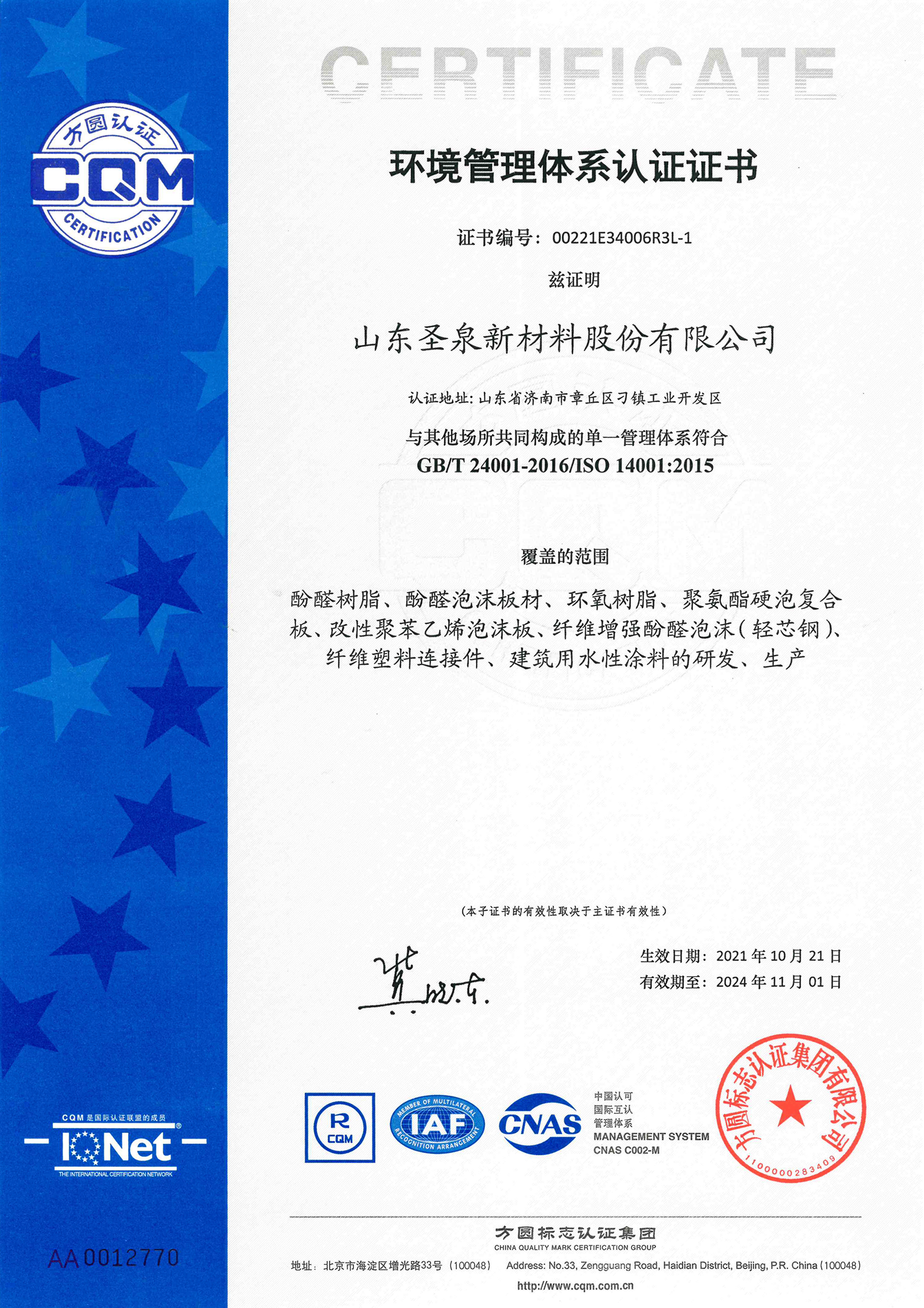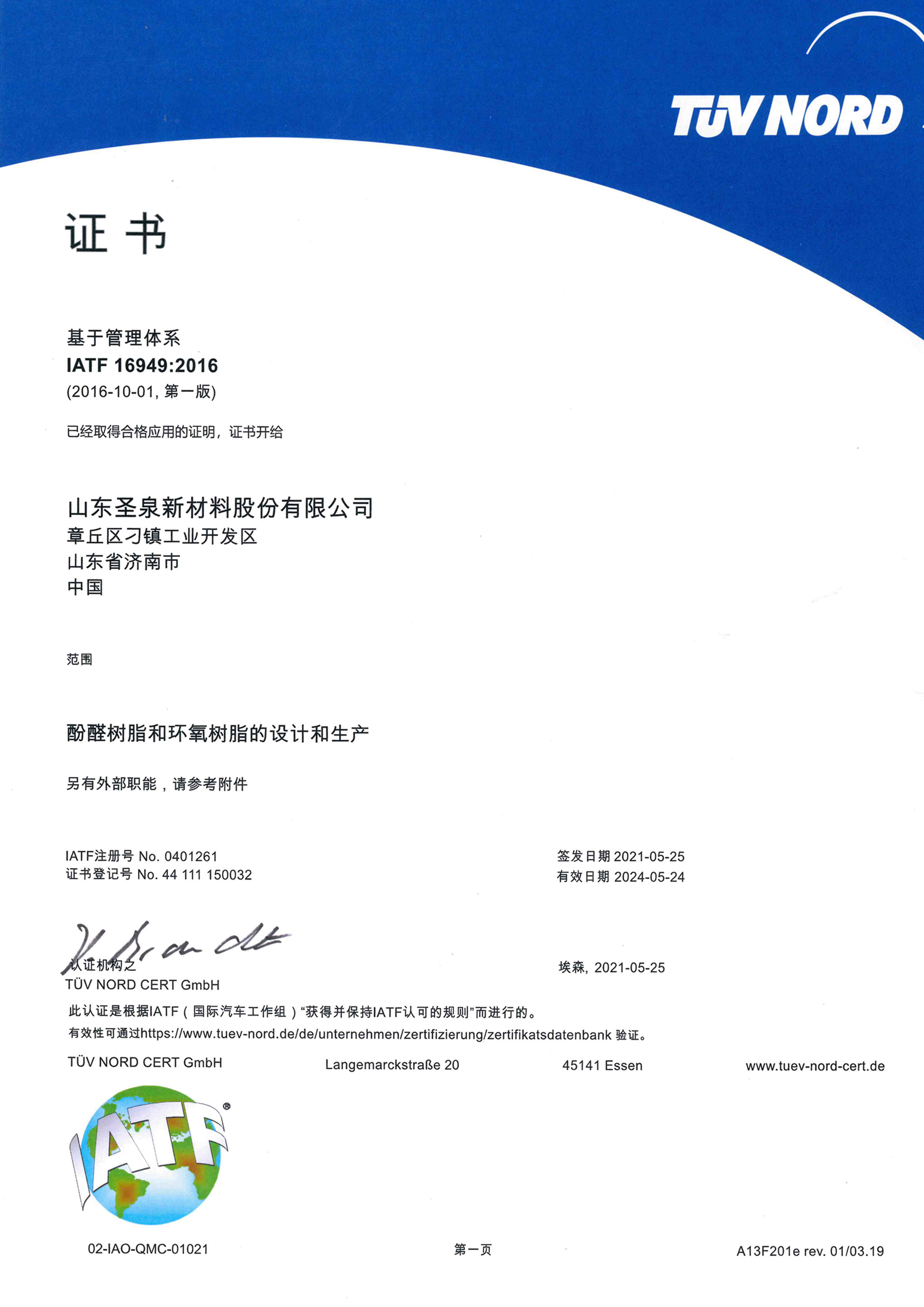 高性能(néng)樹脂及複合材料産業是聖泉的主導産業。目前集團酚醛樹脂産能(néng)達65萬噸/年,位居全球前列,産品廣泛應用于航空航天、電子材料、耐火材料、摩擦材料、保溫材料、浸漬材料、塗覆磨具、輪胎橡膠、電工材料、碳材料、新能(néng)源等領域,是“神舟”系列飛船返回艙保溫原材料制造商,并助力長(cháng)征五号B運載火箭首飛。