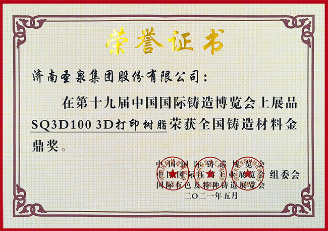 在博覽會(huì)上,聖泉集團展品種(zhǒng)類豐富、系列齊全,可以滿足鑄造廠商對(duì)多種(zhǒng)鑄造材料的需求,充分體現了“一站式采購”的優勢。聖泉展台重點展示了3D打印樹脂、3D打印模具、堿酚樹脂砂再生系統、複合過(guò)濾器等多個新産品、新技術,其中3D打印樹脂産品榮獲鑄造材料金鼎獎。