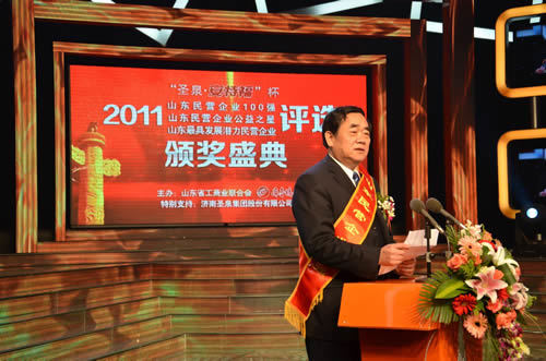 2012年1月10日,由山東省工商聯和齊魯晚報聯合主辦、我公司獨家冠名贊助的2011年度“聖泉·安特福”杯“山東省民營企業100強”等三項評選活動頒獎盛典在濟南隆重舉行。我公司榮獲“山東省民營企業100強”(排名第48位)和“山東省民營企業公益之星”(排名第37位)兩(liǎng)項榮譽稱号。