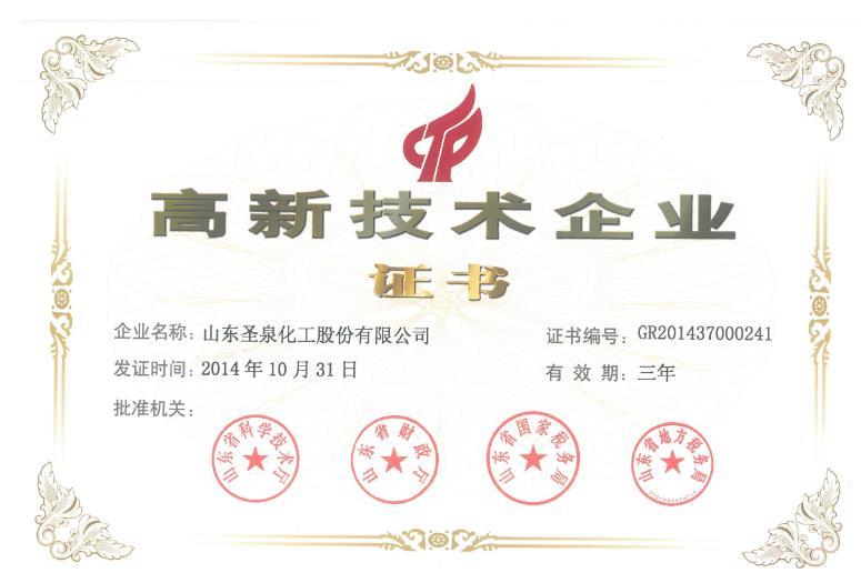 日前,經(jīng)科技部、财政部、稅務總局組成(chéng)的全國(guó)高新技術企業認定管理工作領導小組審核同意,授權各省爲國(guó)家聯合認定的高新技術企業正式頒發(fā)證書。聖泉集團5家企業榮獲高新技術企業桂冠——分别是濟南聖泉集團股份有限公司、山東聖泉化工股份有限公司(已更名爲山東聖泉新材料股份有限公司)、濟南聖泉倍進(jìn)陶瓷過(guò)濾器有限公司、濟南卡博唐生物科技有限公司、營口聖泉高科材料有限公司。聖泉5家高新技術企業將(jiāng)連續三年享受所得稅率15%的稅收優惠政策,并配套享受财政、金融、貿易等一系列優惠政策,國(guó)家和地方政府鞭策與激勵多措并舉,打造高企創新發(fā)展加速度。