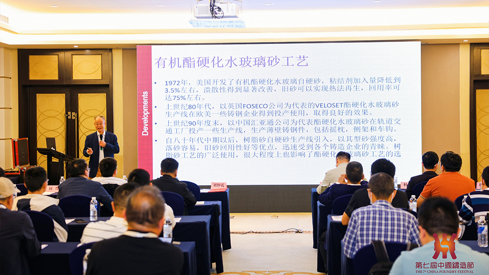 In the advanced cast steel technology sub-forum, Liu Ye, Technical director of the Casting Material Division of Shengquan Group, made a report entitled "Development history of inorganic binders and application prospects in steel castings". He discussed the development history, advantages and disadvantages of inorganic binders and its application prospects in the production of steel castings with detailed data, which is of great significance to promote the green development of casting industry.