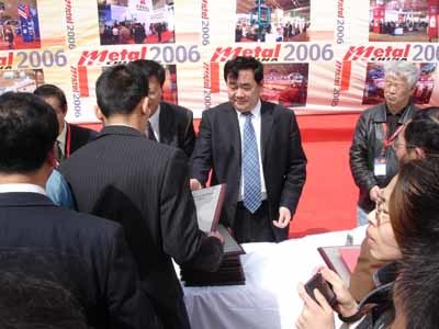注:中國(guó)鑄造協會(huì)理事(shì)會(huì)主要成(chéng)員到我公司展位前指導工作,并與公司