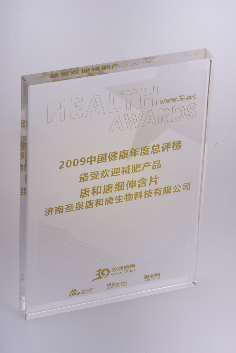 12月17日,由39健康網主辦,新浪網、網易、淘寶網聯合評選的“2009中國(guó)健康年度總評榜”頒獎典禮在北京舉行。經(jīng)過(guò)2000多萬網民以及多位健康領域專家的共同投票,唐和唐榮獲“百姓放心品牌獎”,唐和唐細伸含片獲得“最受歡迎減肥産品”的榮譽。