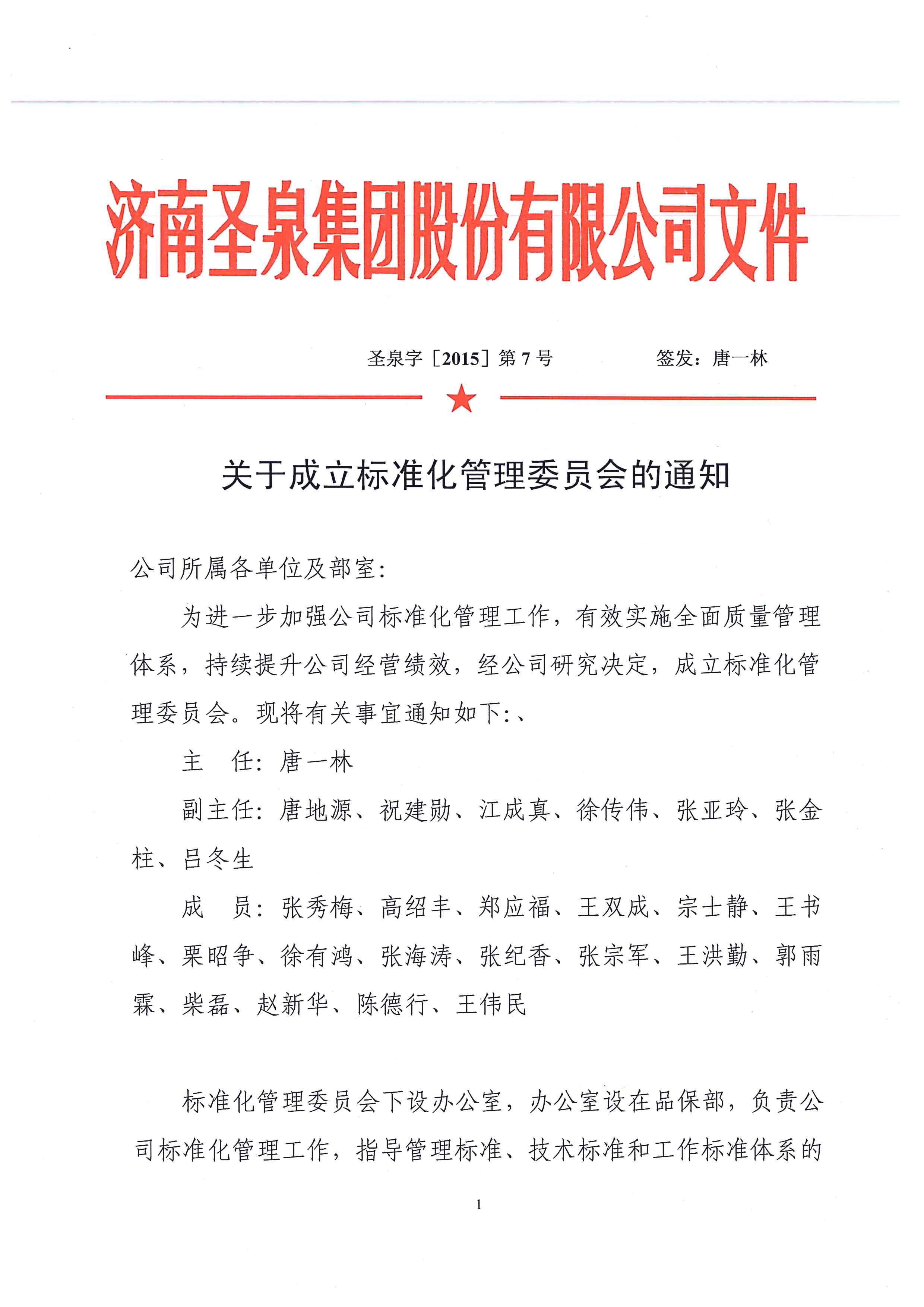 • 聖泉集團關于成(chéng)立标準化管理委員會(huì)的通知