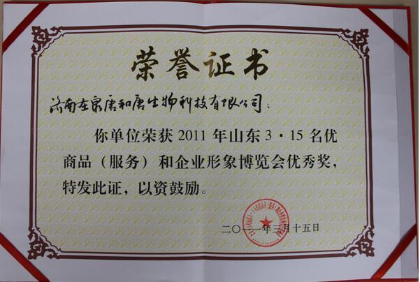 唐和唐榮獲2011年山東3·15名優商品(服務)和企業形象博覽會(huì)優秀獎
