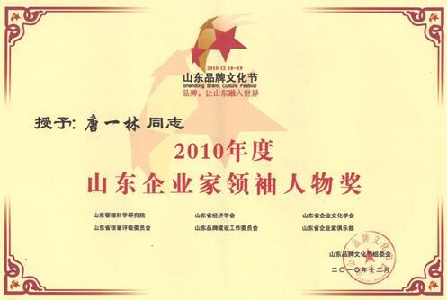 唐和唐董事(shì)長(cháng)唐一林榮獲“2010年度山東企業家領袖人物獎”