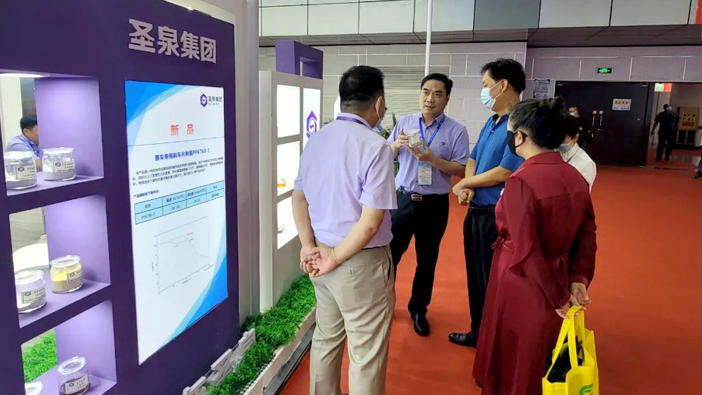 本次展會(huì)聖泉重點展出了賽車專用刹車片樹脂、高活性酚醛樹脂、橡膠改性酚醛樹脂等多款産品。其中更是首次推出最新研制的水性鋼背膠以及酚醛纖維等多個新産品、新技術,成(chéng)爲展會(huì)亮點,吸引了協會(huì)領導、行業代表及衆多客戶駐足聖泉展台,就(jiù)産品情況和行業信息進(jìn)行廣泛交流。
