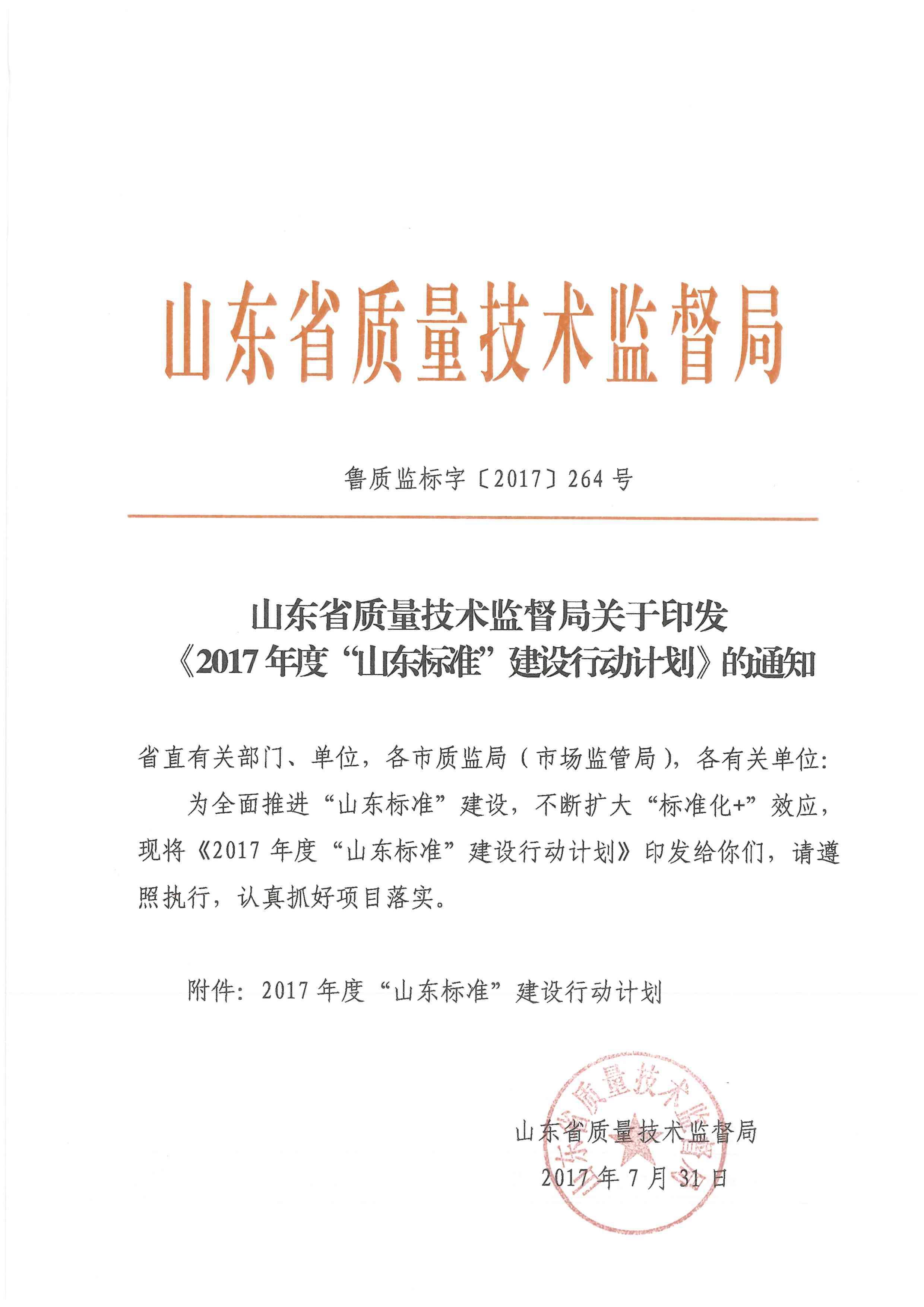 山東省質量技術監督局關于印發(fā)《2017年度“山東标準”建設行動計劃》的通知