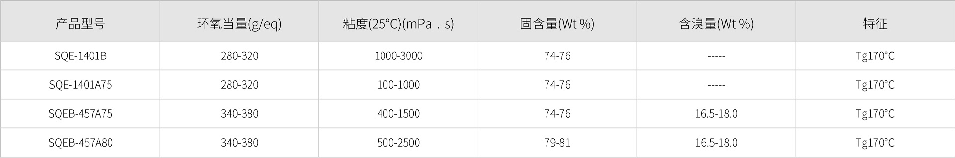 • 此類環氧樹脂具有非常好(hǎo)的柔韌性,改善了環氧樹脂固化後(hòu)比較脆的缺點,用來改善環氧樹脂體系的韌性,提高粘結強度或剝離強度,在覆銅闆無鉛或無鹵産品增韌改性上得到了良好(hǎo)的應用。