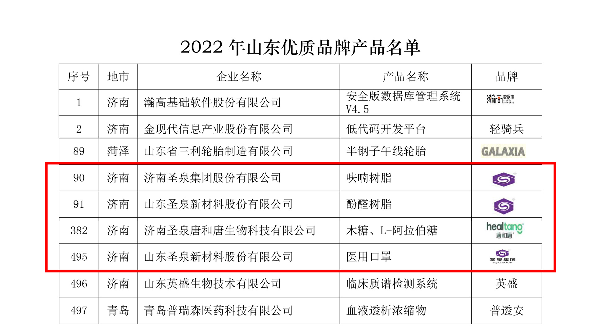 近日,山東省質量評價協會(huì)發(fā)布2022年山東優質品牌産品,聖泉牌呋喃樹脂、酚醛樹脂、醫用口罩,唐和唐牌木糖、阿拉伯糖等産品入圍。