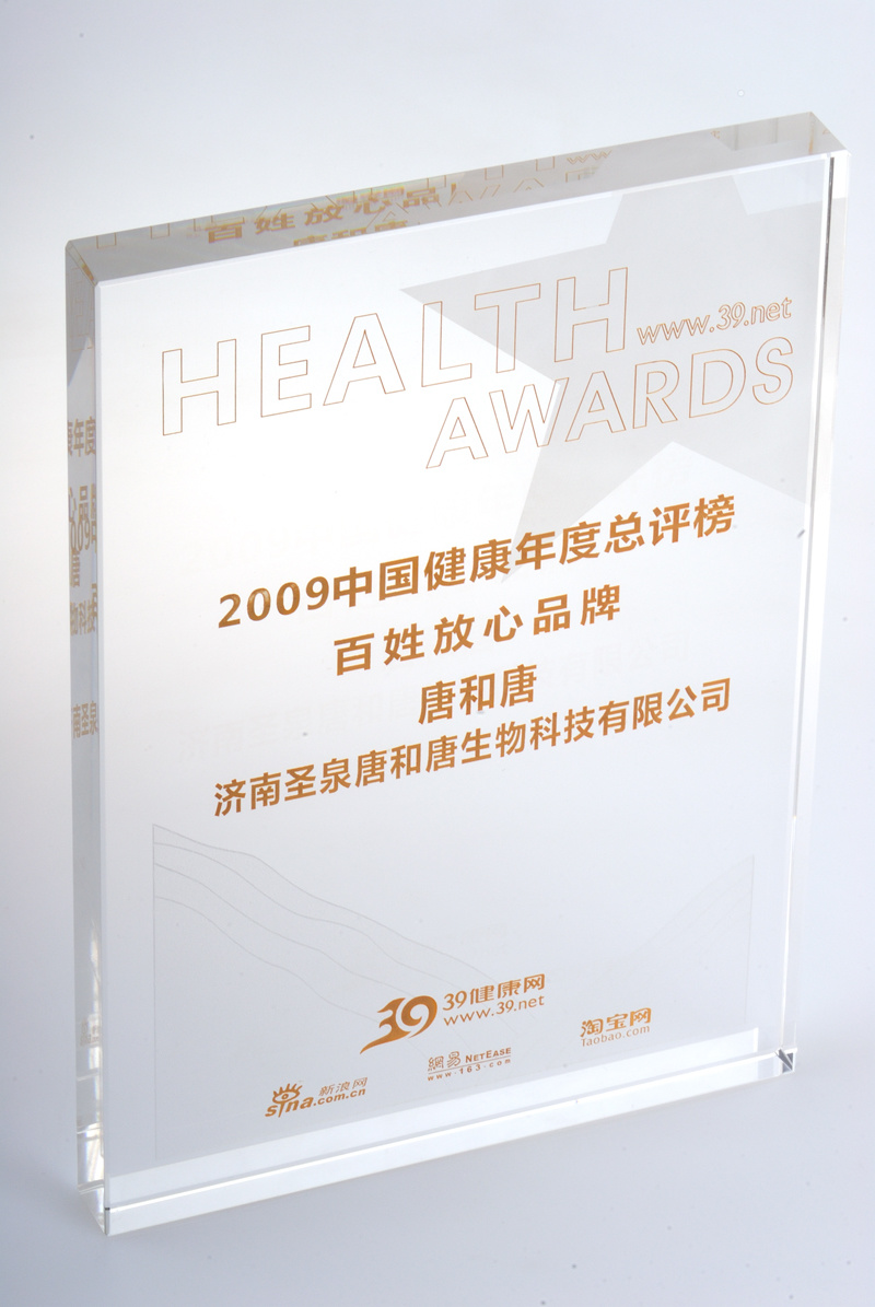 12月17日,由39健康網主辦,新浪網、網易、淘寶網聯合評選的“2009中國(guó)健康年度總評榜”頒獎典禮在北京舉行。經(jīng)過(guò)2000多萬網民以及多位健康領域專家的共同投票,唐和唐榮獲“百姓放心品牌獎”,唐和唐細伸含片獲得“最受歡迎減肥産品”的榮譽。